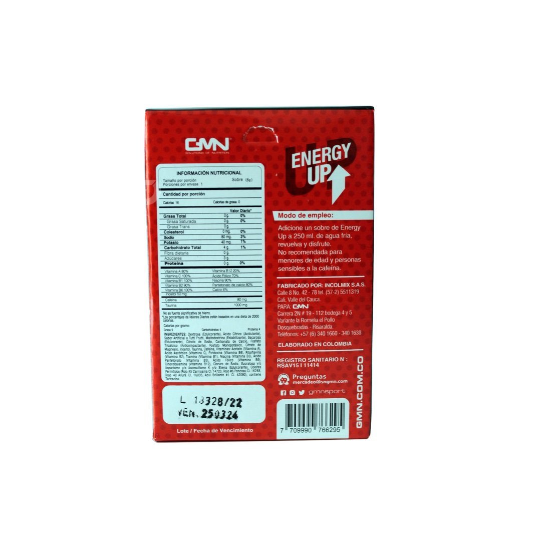 Energy Up es un energético ideal para intensificar los entrenamientos para garantizar mayores resultados, la mezcla perfecta entre taurina, cafeína incrementan la energía y mejoran la concentración, adicionado con vitaminas y minerales que garantizan un estado óptimo del organismo.