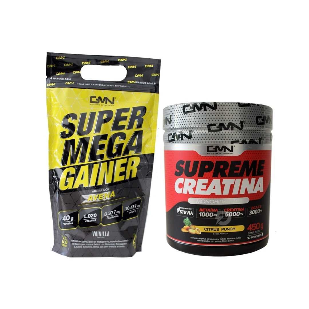 PROTEÍNA SÚPER MEGA GAINER 2 LIBRAS + CREATINA SUPREME 450 GRAMOS