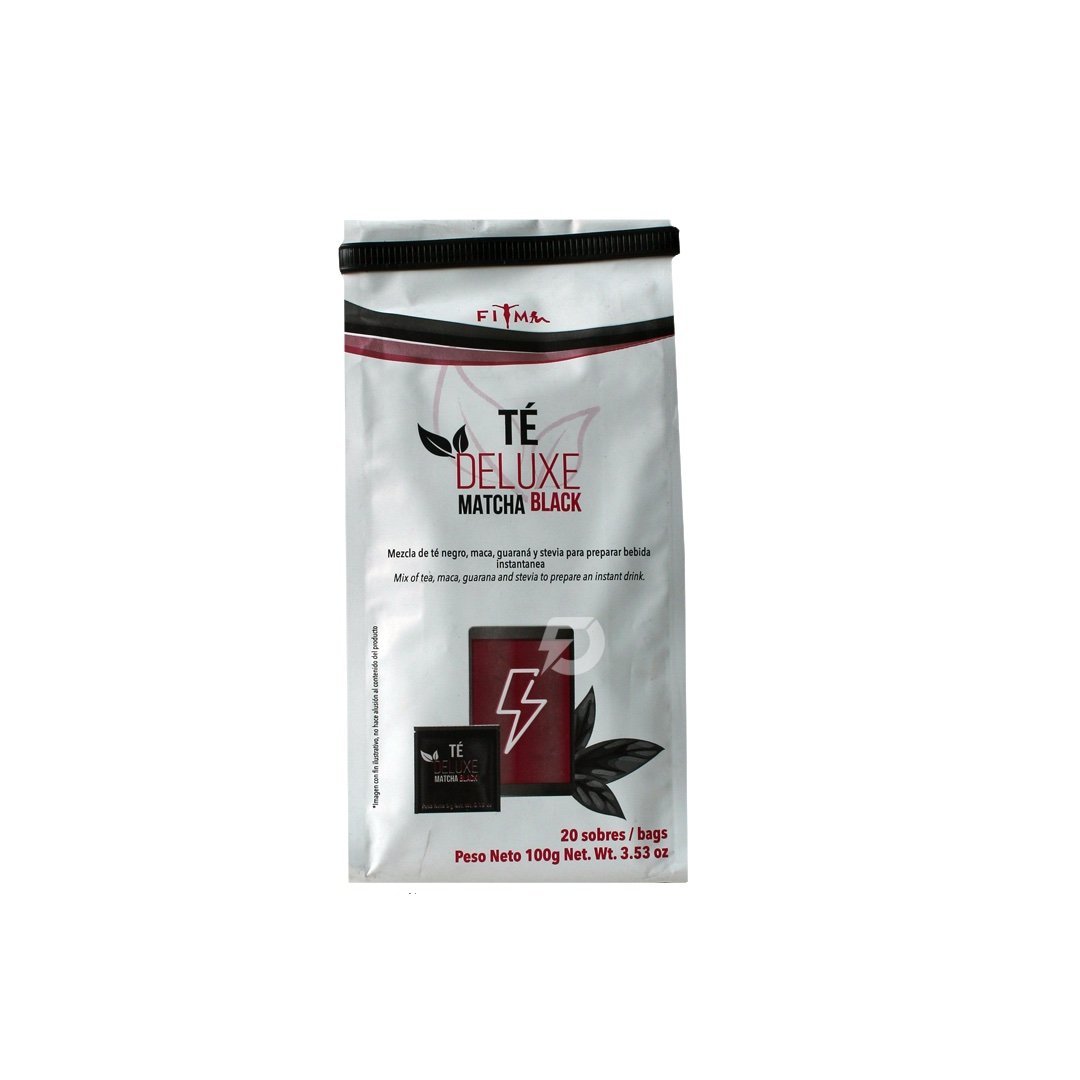 mezcla de té negro, maca, guaraná y stevia para preparar bebida instantánea.
